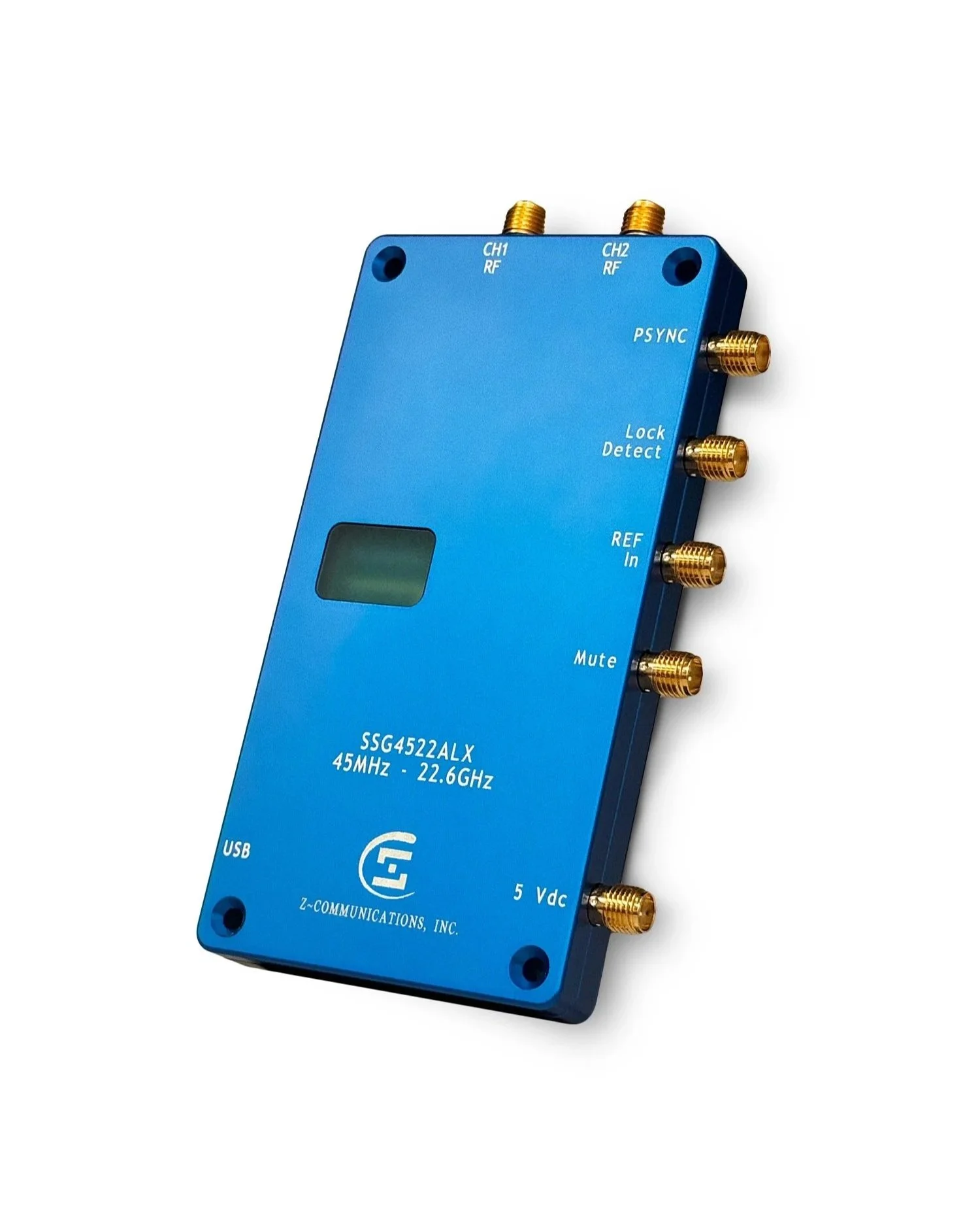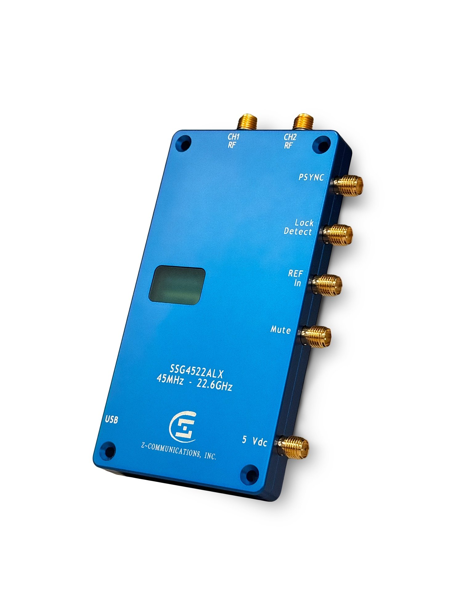 The Z-COMM SSG series of Smart Phase Locked Loop (PLL) modules provide high performance in a compact, all metal package suitable for any number of applications. Fully programmable through a unique Bluetooth interface, or USB cable, the user may adjust functions such as frequency, sweep mode, dwell time, step size, and power output, among others. LED indicators provide a visual cue of the status of the various functions. It’s rugged enclosure lends itself to in-field use as well as bench top testing. The highly reliable output signal, excellent phase noise, and flexibility of an internal reference or input for an external reference, provides RF Engineers with an adaptable RF tool.